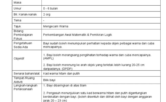 Contoh rpa perkembangan bahasa komunikasi dan literasi awal bayi rancangan pelaksanaan aktiviti .